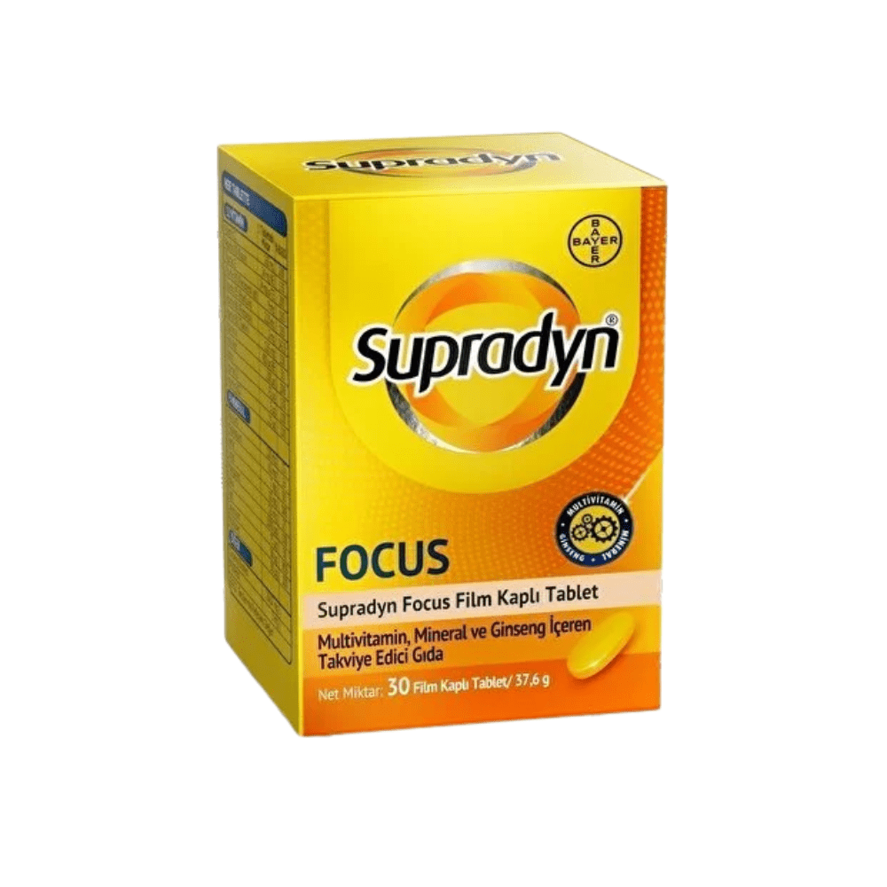 استعيد طاقتك الذهنية والجسدية مع Supradyn Focus، تركيبة متقدمة تحتوي على الزيتون متعدد الفينولات، الجينسنغ، الفيتامينات والمعادن الأساسية التي تدعم وظائف الدماغ والتركيز وتحارب التعب الذهني.